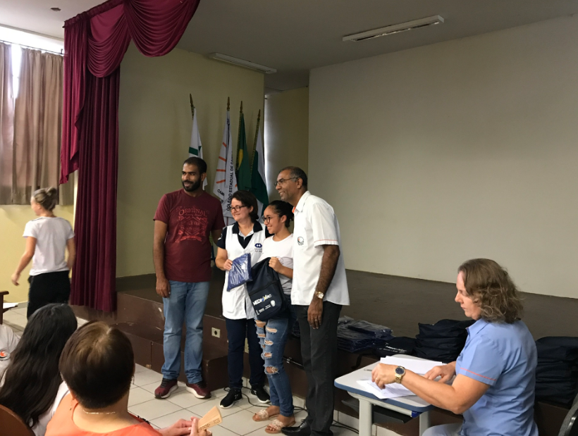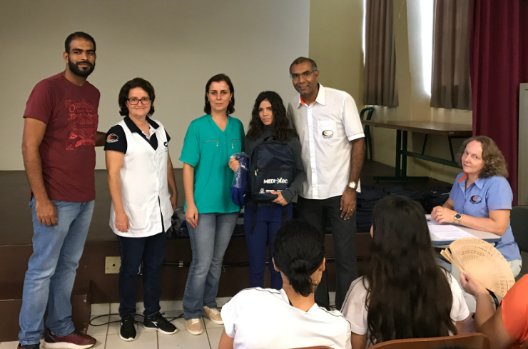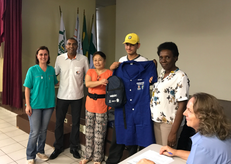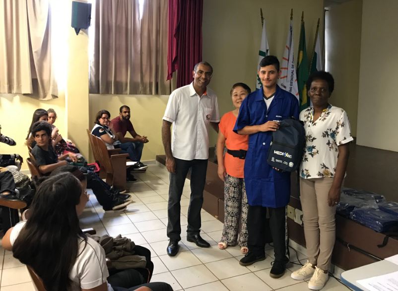 Na ocasião foram entregues aos trinta alunos devidamente matriculados no curso Pronatec/Mediotec em Administração, um kit escolar, composto por mochila, jaleco, cadernos e outros materiais escolares, os quais serão utilizados durante o ano letivo.
