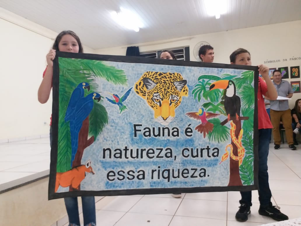 O Colégio Estadual do Campo Jaelson Biácio, distrito de Piquirivaí/Campo Mourão, promoveu na noite de 17/04/2019, programação cultural diversificada, envolvendo a comunidade escolar: O Projeto Interdisciplinar – Aprendendo a Vida 2019. O projeto, desenvolvido durante o ano letivo e com finalização prevista para dezembro, tem como temática a Sustentabilidade e a etapa do dia 17 de abril contou com a participação de seis equipes formadas por alunos diferentes turmas: Água, Solo, Ar e Luz, Flora e Fauna.