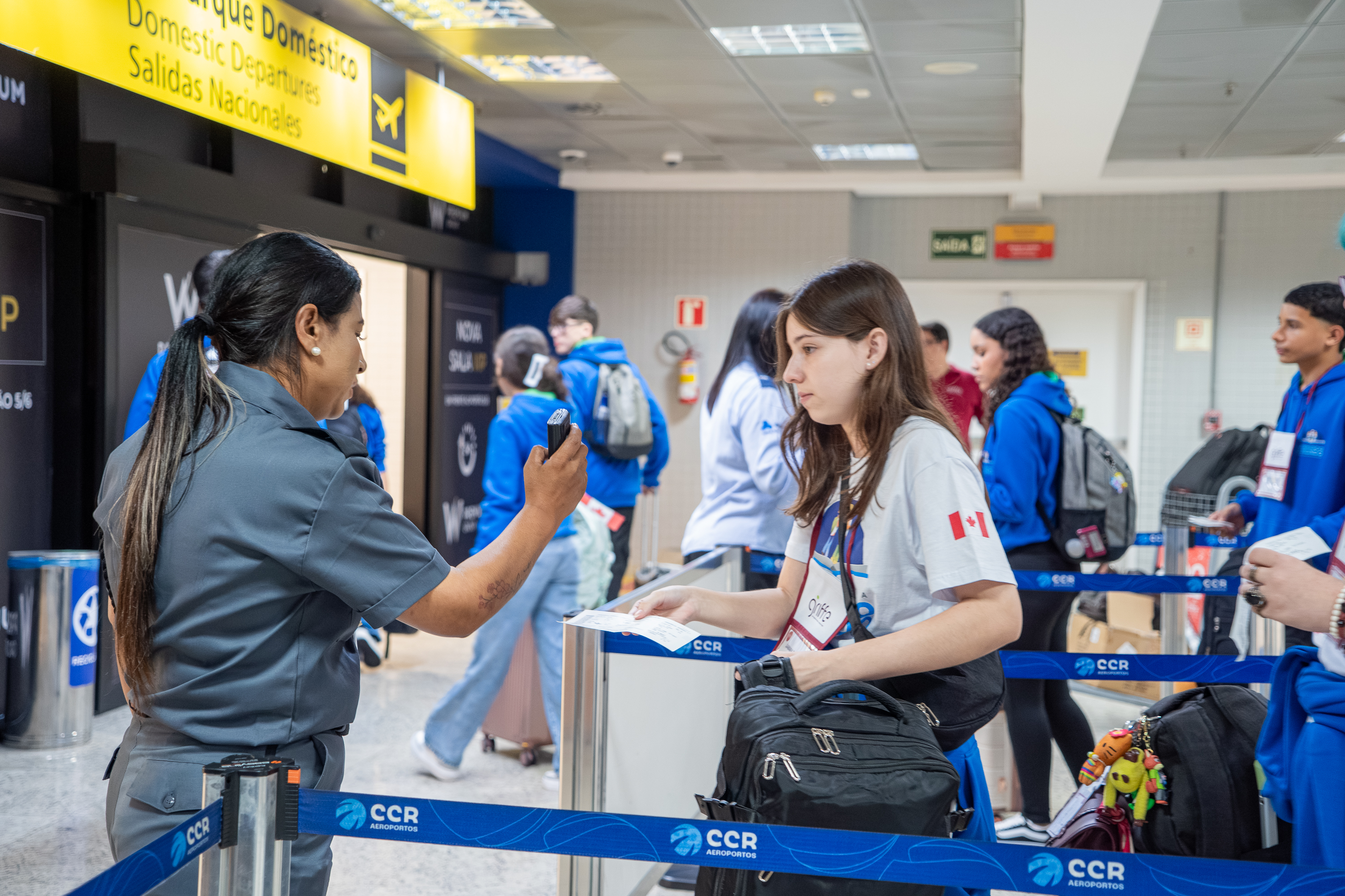 O Aeroporto Internacional Afonso Pena, em São José dos Pinhais, foi marcado por emoção e despedidas na tarde desta terça-feira (27), com o embarque do primeiro grupo de estudantes do Programa Ganhando o Mundo 2026 com destino ao Canadá. O voo levou 20 dos 372 alunos da rede estadual de ensino que vão para o país pelo programa do Governo do Estado, desenvolvido pela Secretaria da Educação do Paraná (Seed-PR).